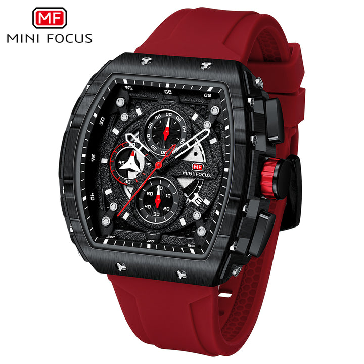 Mini Focus Red Silicone Strap Black Dial Chronograph Quartz Watch for Gents - MF0399G-04