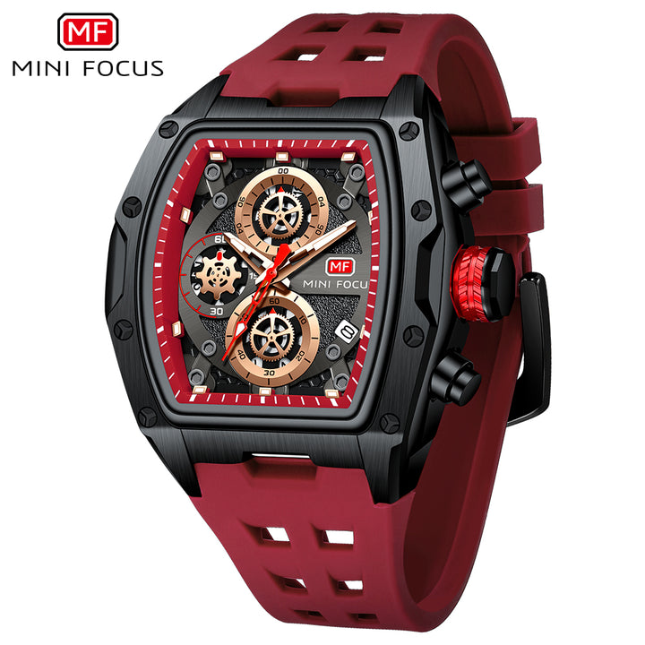 Mini Focus Red Silicone Strap Black Dial Chronograph Quartz Watch for Gents - MF0473G-04