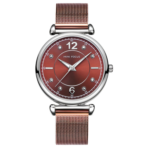 Add to WishlistMini Focus Rose Gold Mesh Bracelet Red Dial Quartz Watch for Ladies - MF0177L-03