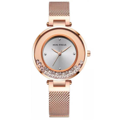 Add to WishlistMini Focus Rose Gold Mesh Bracelet Silver Dial Quartz Watch for Ladies - MF0254L-02