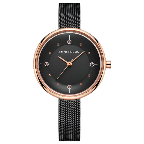Mini Focus Rose Gold Stainless Steel Silver Dial Quartz Watch for Ladies - MF0263L-03