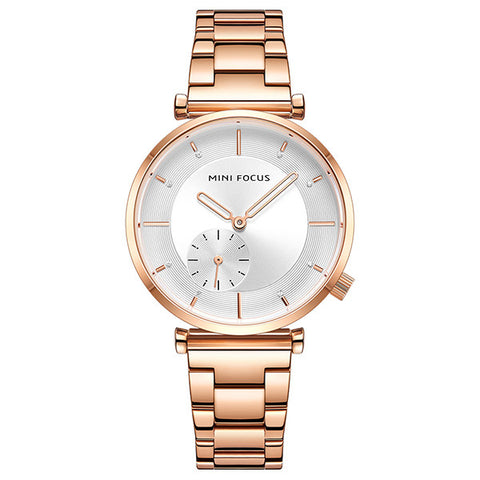 Add to WishlistMini Focus Rose Gold Stainless Steel Silver Dial Quartz Watch for Ladies - MF0333L-03