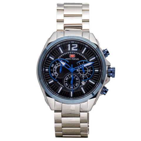 Add to WishlistMini Focus Silver Leather Strap Blue Dial Chronograph Quartz Watch for Gents - MF0104G-02