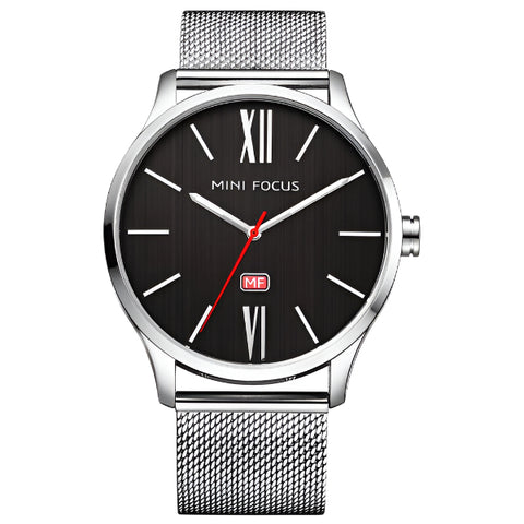 Add to WishlistMini Focus Silver Mesh Bracelet Black Dial Quartz Watch for Gents - MF0018G-03