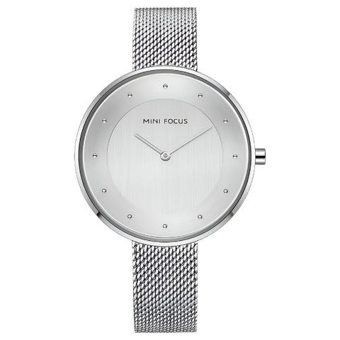 Mini Focus Silver Mesh Bracelet Silver Dial Quartz Watch for Ladies - MF0179L-02