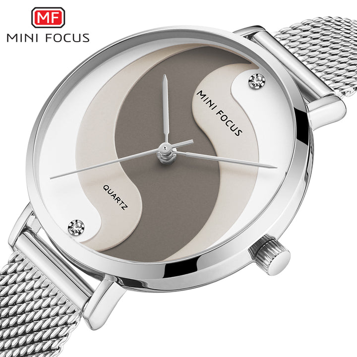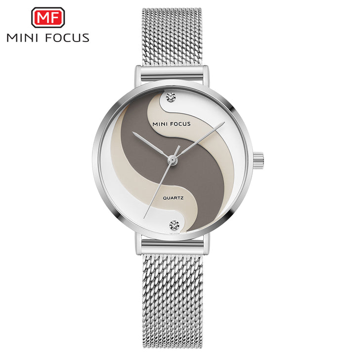 Mini Focus Silver Mesh Bracelet Two-tone Dial Quartz Watch for Ladies - MF0291L-02