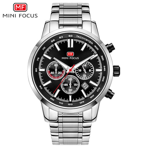 Add to WishlistMini Focus Silver Stainless Steel Black Dial Chronograph Quartz Watch for Gents - MF0133G-03