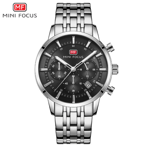 Add to WishlistMini Focus Silver Stainless Steel Black Dial Chronograph Quartz Watch for Gents - MF0282G-04