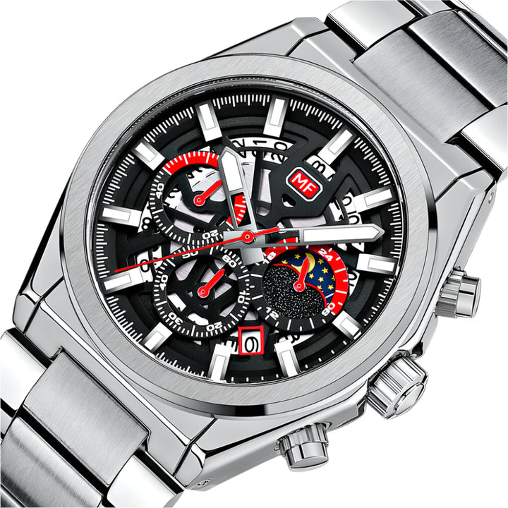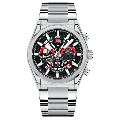 Mini Focus Silver Stainless Steel Black Dial Chronograph Quartz Watch for Gents - MF0339G-01