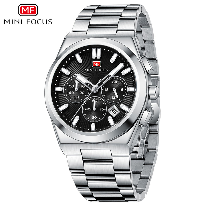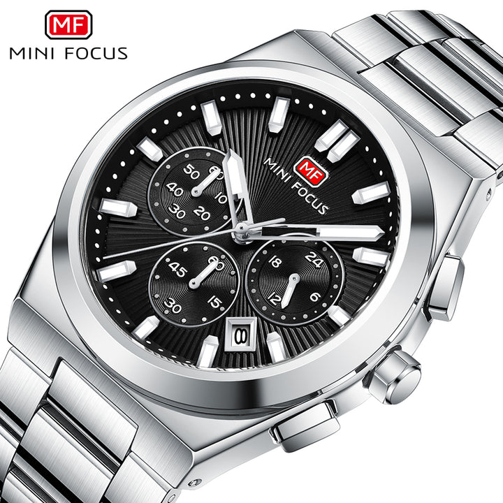 Mini Focus Silver Stainless Steel Black Dial Chronograph Quartz Watch for Gents - MF0614G-01