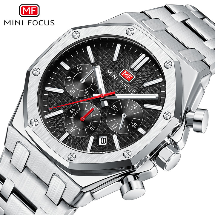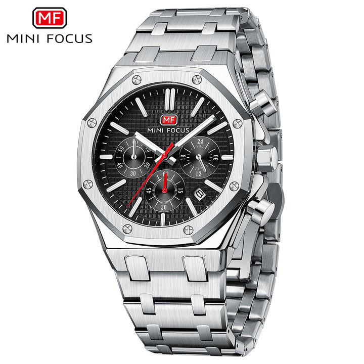 Mini Focus Silver Stainless Steel Black Dial Quartz Watch for Gents - MF0609G-01