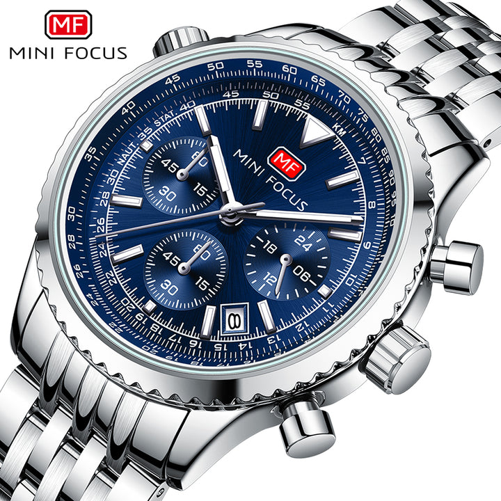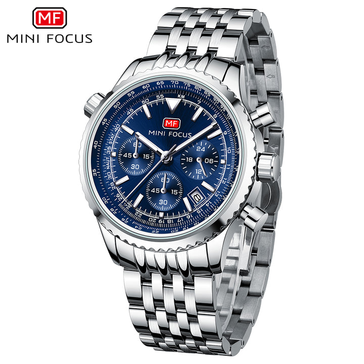 Mini Focus Silver Stainless Steel Blue Dial Chronograh Quartz Watch for Gents - MF0463G-03