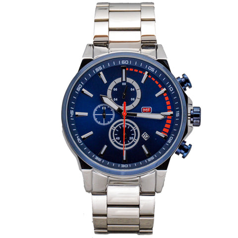 Mini Focus Silver Stainless Steel Blue Dial Chronograph Quartz Watch for Gents - MF0085G-04