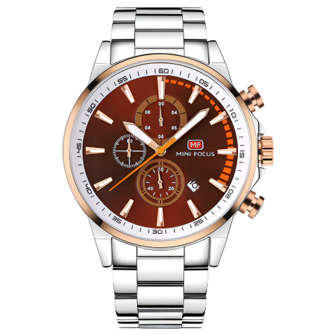 Mini Focus Silver Stainless Steel Brown Dial Chronograph Quartz Watch for Gents - MF0085G-01