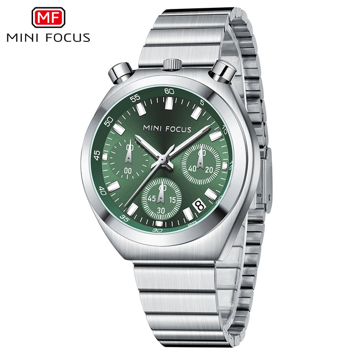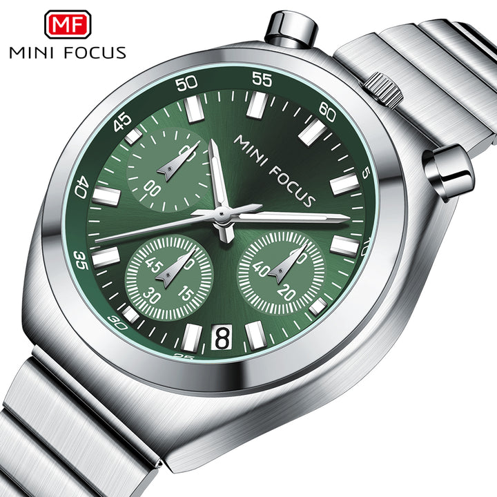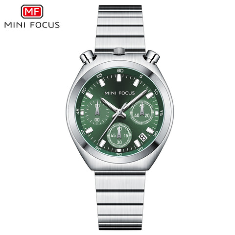 Mini Focus Silver Stainless Steel Green Dial Chronograph Quartz Watch for Gents - MF0491L-03
