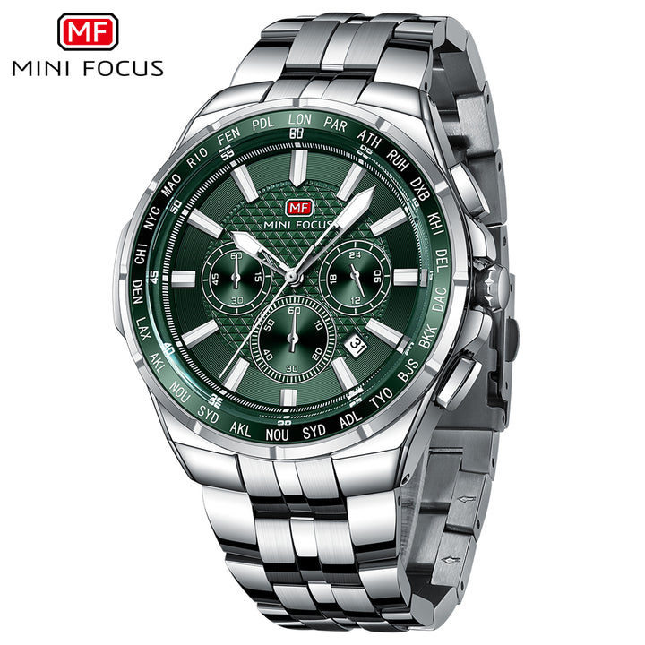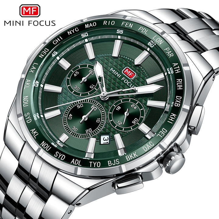 Mini Focus Silver Stainless Steel Green Dial Chronograph Quartz Watch for Gents - MF0613G-02