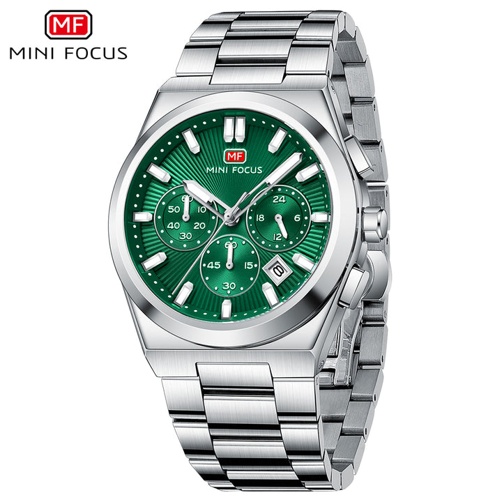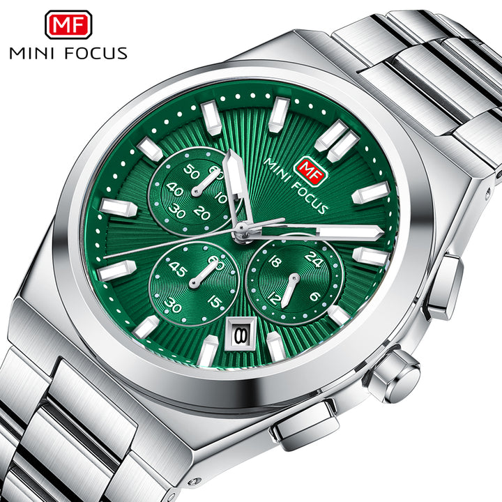 Mini Focus Silver Stainless Steel Green Dial Chronograph Quartz Watch for Gents - MF0614G-02