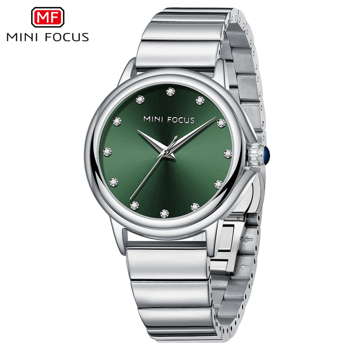 Mini Focus Silver Stainless Steel Green Dial Quartz Watch for Ladies - MF0493L-02