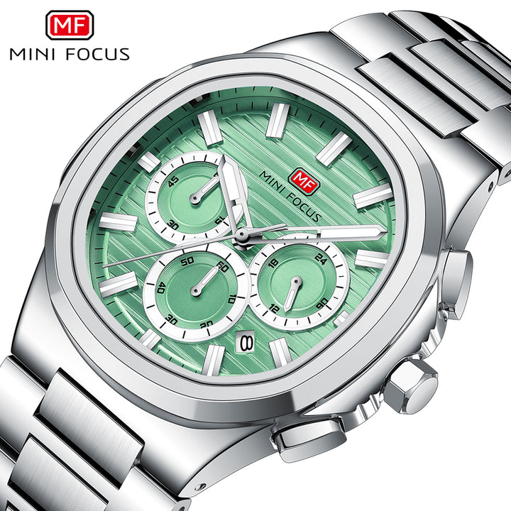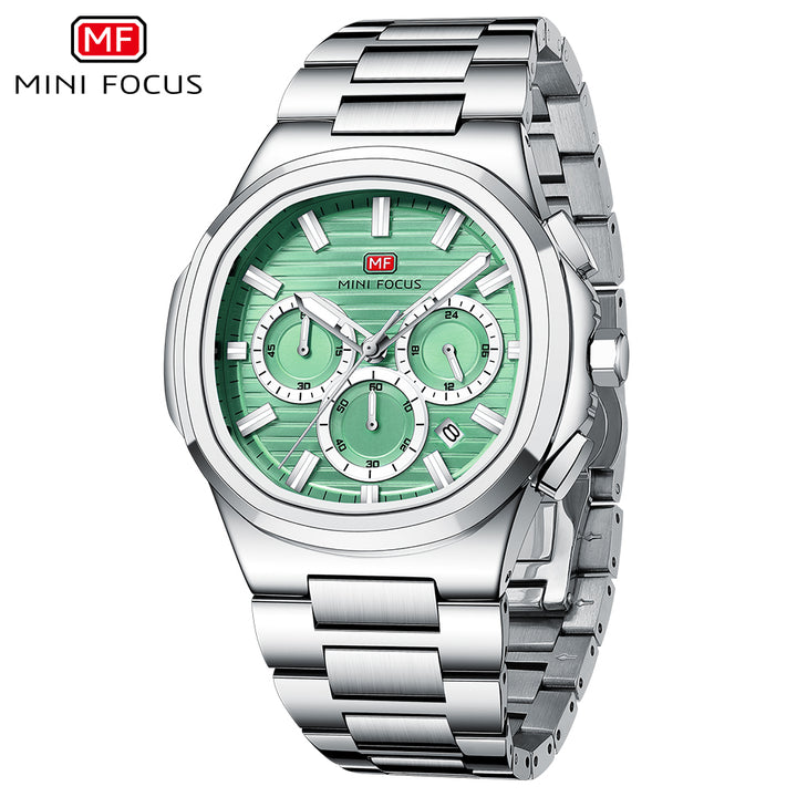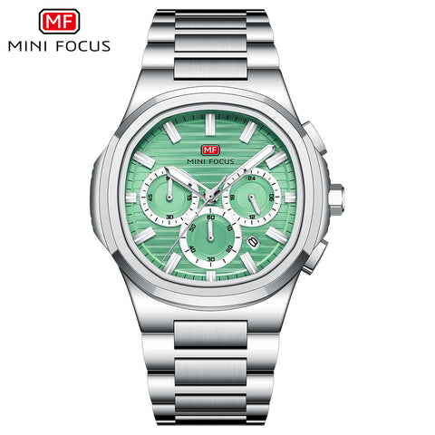 Mini Focus Silver Stainless Steel Light Green Dial Chronograph Quartz Watch for Gents - MF0610G-05