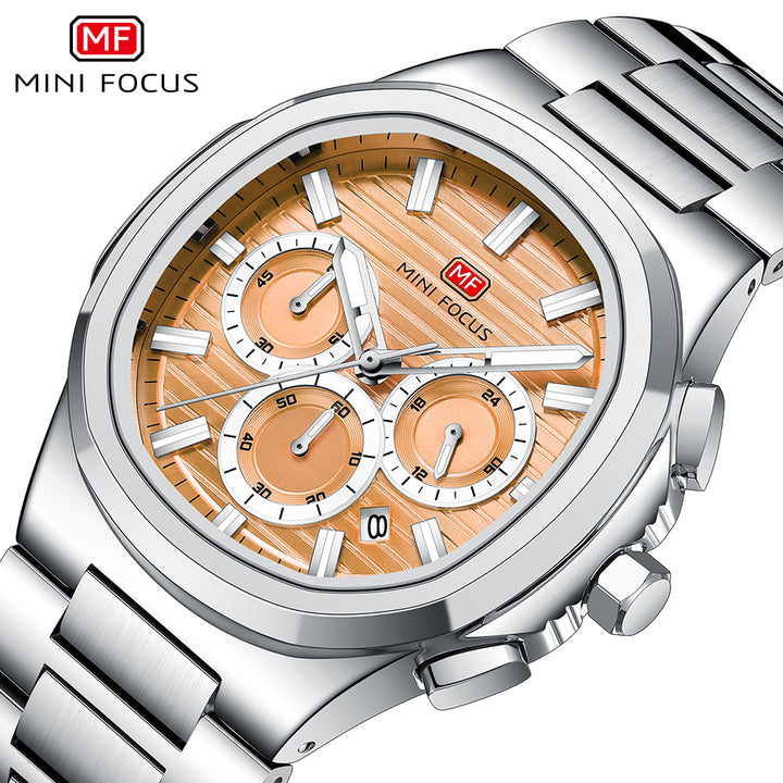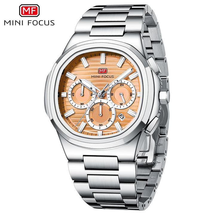 Mini Focus Silver Stainless Steel Orange Dial Chronograph Quartz Watch for Gents - MF0610G-06