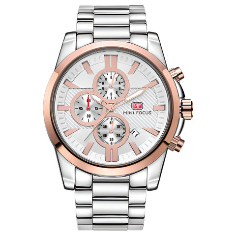 Mini Focus Silver Stainless Steel Silver Dial Chronograph Quartz Watch for Gents - MF0134G-02