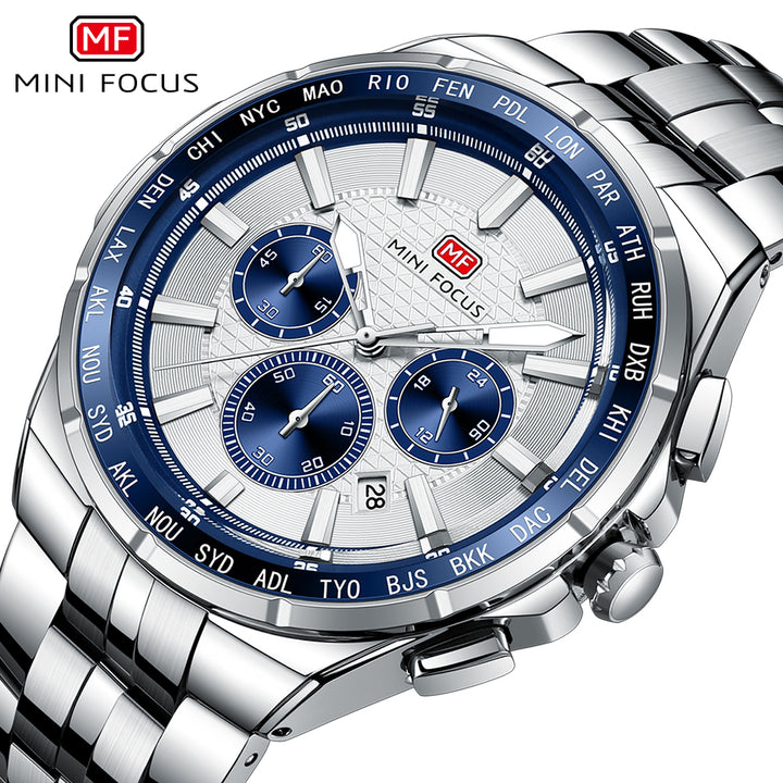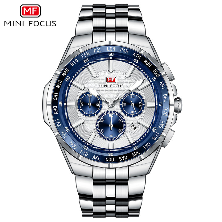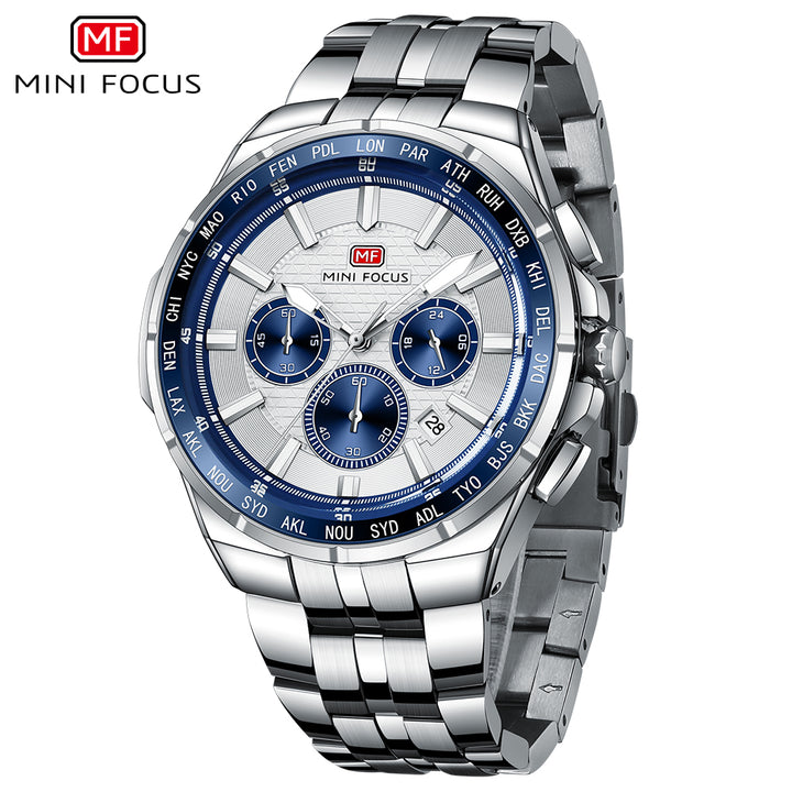 Mini Focus Silver Stainless Steel Silver Dial Chronograph Quartz Watch for Gents - MF0613G-03