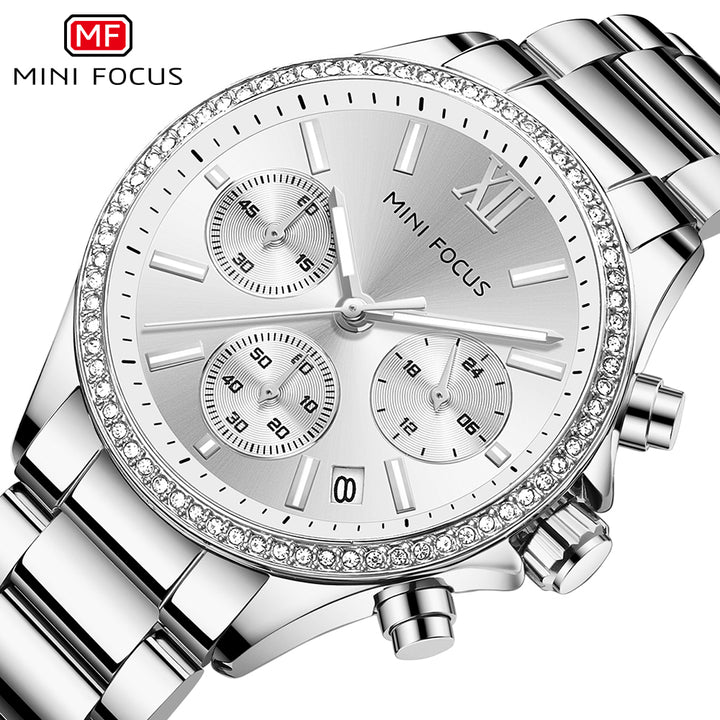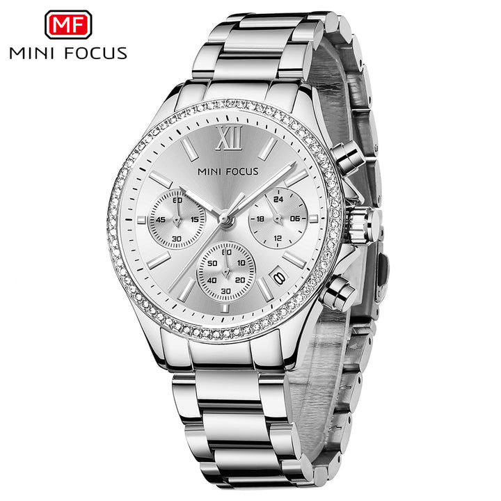 Mini Focus Silver Stainless Steel Silver Dial Chronograph Quartz Watch for Ladies - MF0617L-01