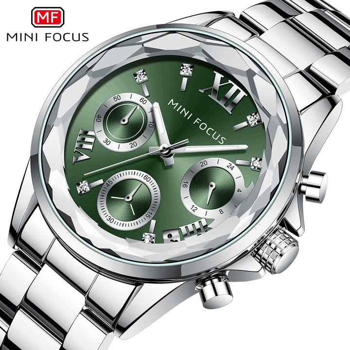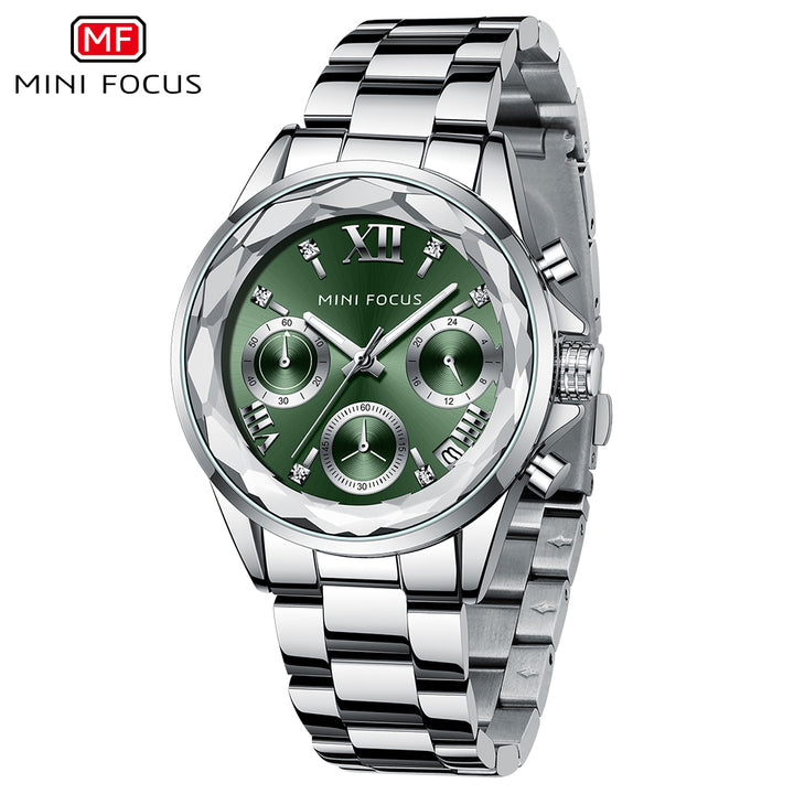 Mini Focus Silver Stainless Steel White Dial Chronograh Quartz Watch for Ladies - MF0466L-02