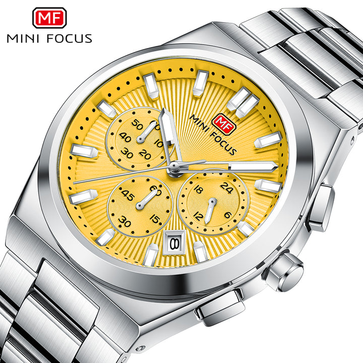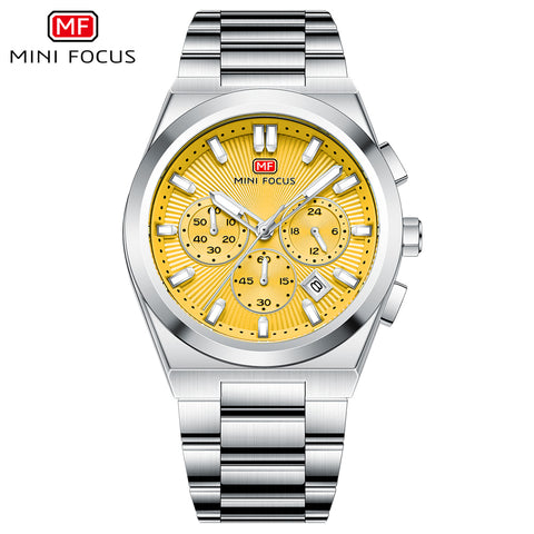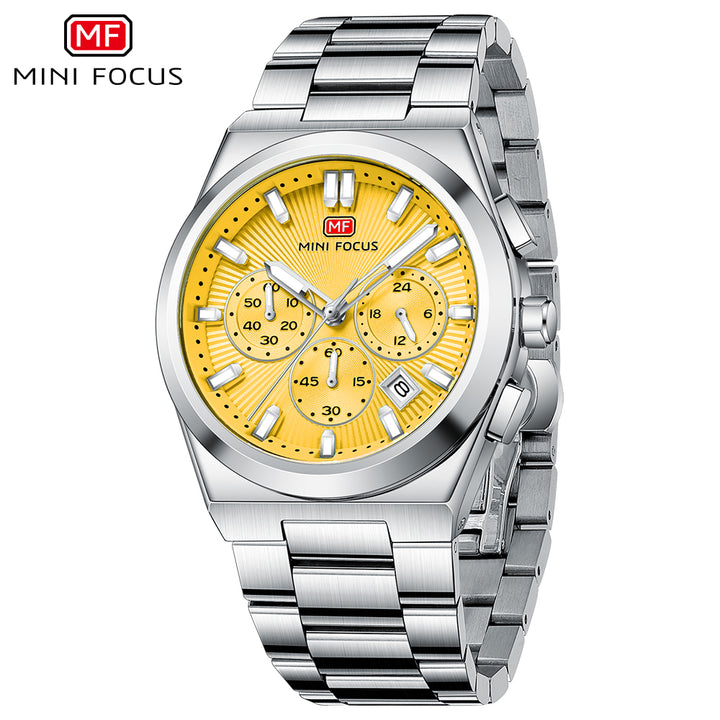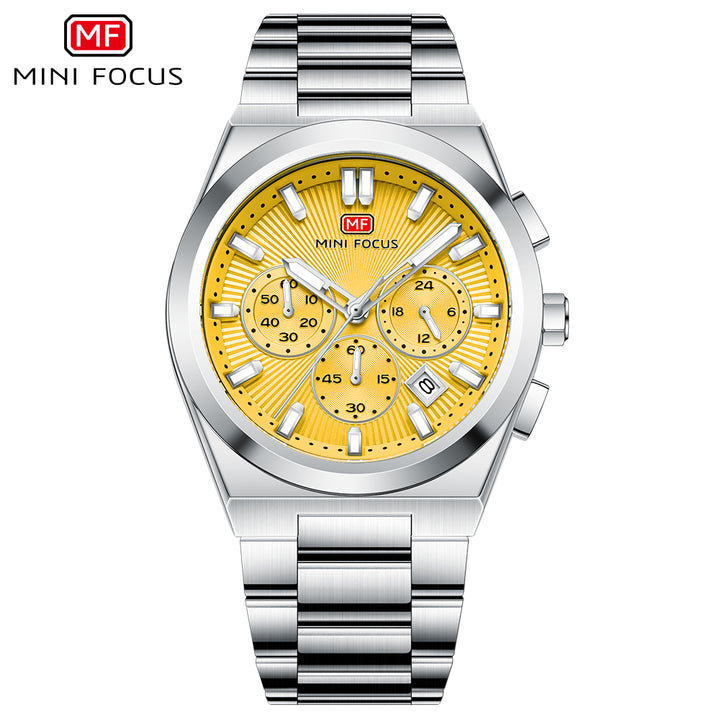 Mini Focus Silver Stainless Steel Yellow Dial Chronograph Quartz Watch for Gents - MF0614G-04