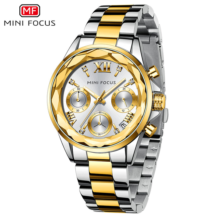 Mini Focus Two-tone Stainless Steel Black Dial Chronograh Quartz Watch for Ladies - MF0466L-04