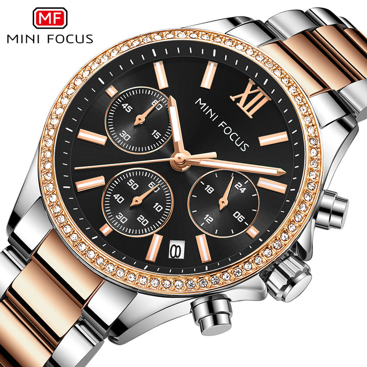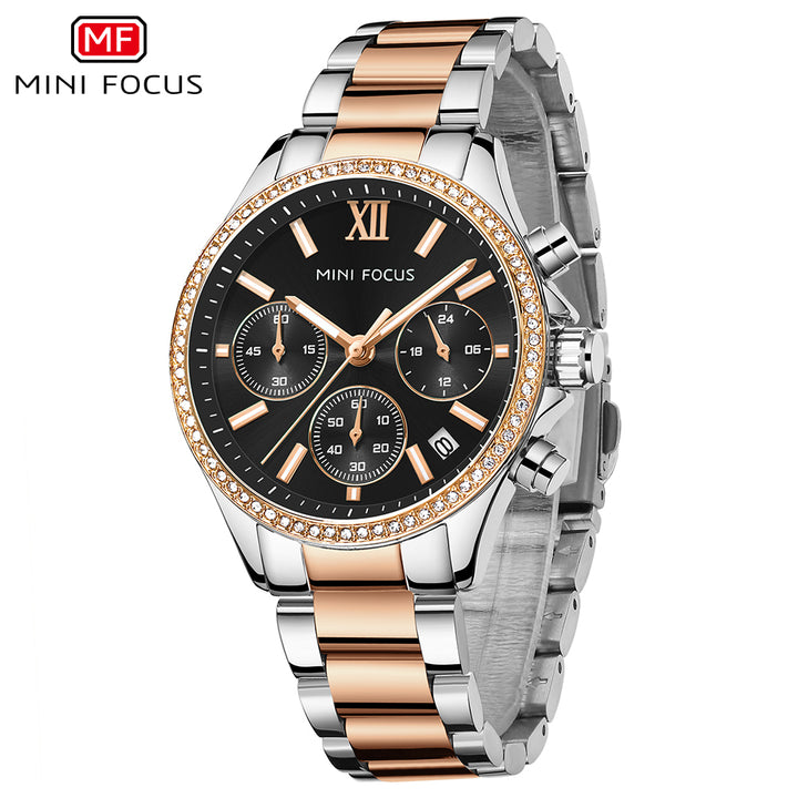 Mini Focus Two-tone Stainless Steel Black Dial Chronograph Quartz Watch for Ladies - MF0617L-02