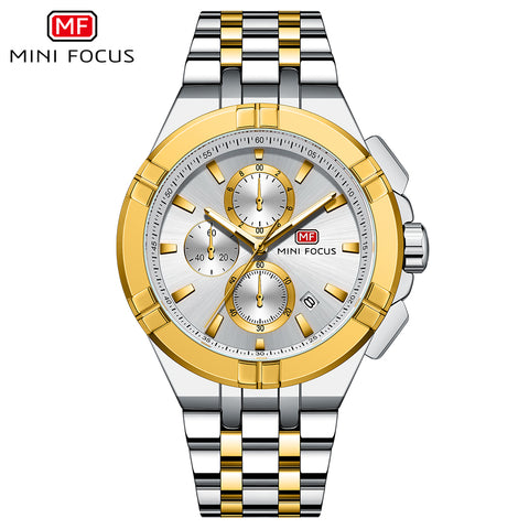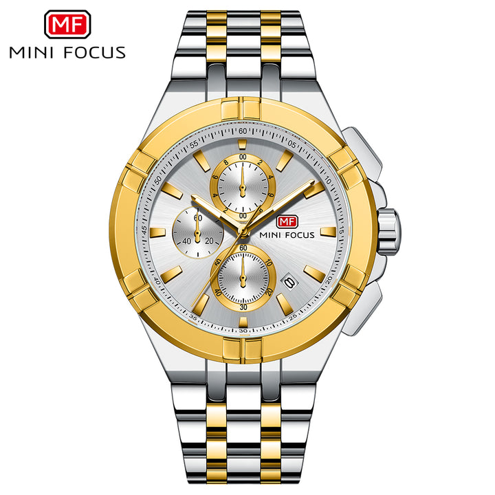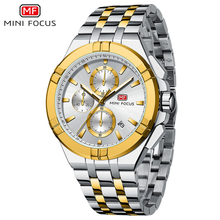 Mini Focus Two-tone Stainless Steel Silver Dial Chronograh Quartz Watch for Gents - MF0471G-02