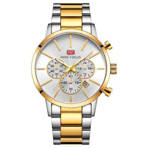 Mini Focus Two-tone Stainless Steel Silver Dial Chronograph Quartz Watch for Gents - MF0294G-02