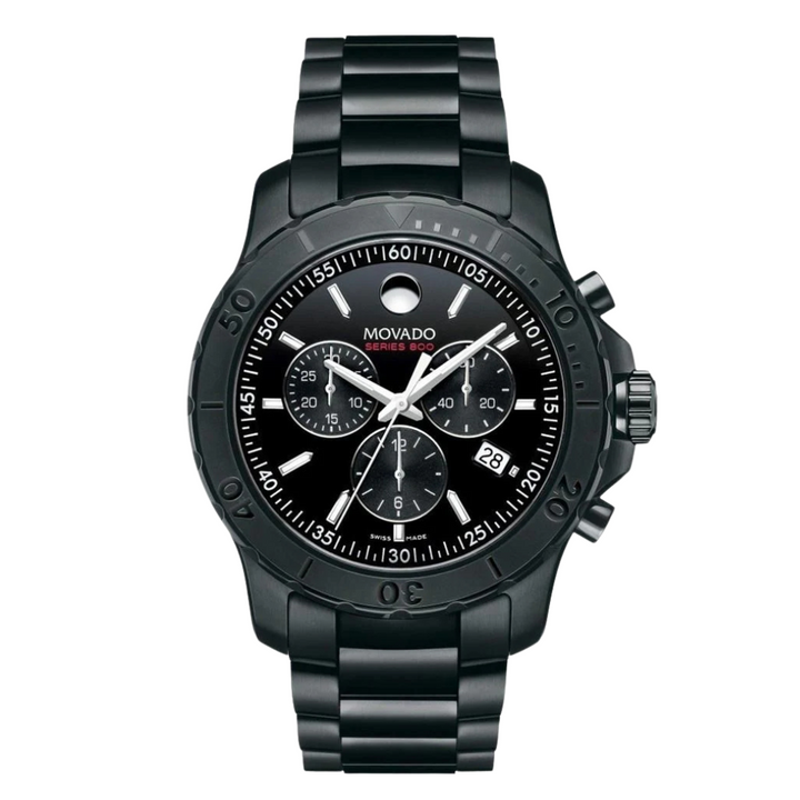 Movado 800 Series Black Stainless Steel Black Dial Chronograph Quartz Watch for Gents - 2600119