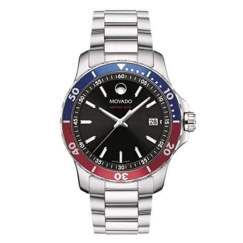 Movado 800 Series Silver Stainless Steel Black Dial Quartz Watch for Gents - 2600152