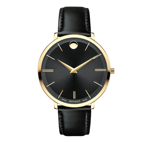 Movado Black Leather Strap Black Dial Quartz Watch for Ladies - Movado 0607091