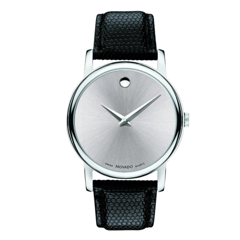 Movado Black Leather Strap Silver Dial Quartz Watch for Gents - Movado 2100001