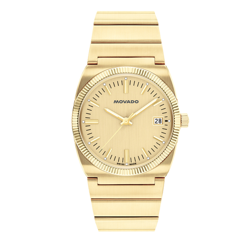 Movado Gold Stainless Steel Gold Dial Quartz Watch for Gents - Movado 3650217