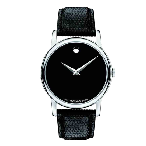 Movado Museum Classic Black Leather Black Dial Quartz Watch for Gents - 2100002