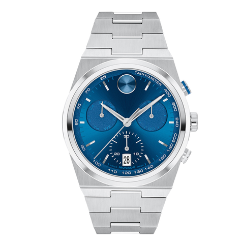 Movado Silver Stainless Steel Blue Dial Chronograph Quartz Watch for Gents - Movado 3601199