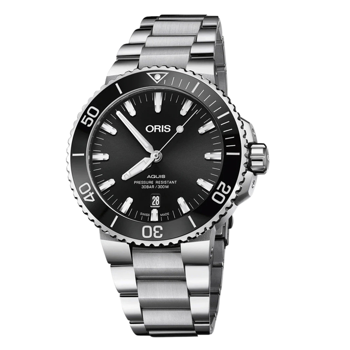 Add to WishlistOris Aquis Date Silver Stainless Steel Black Dial Automatic Watch for Gents - 01.733.7730.4134