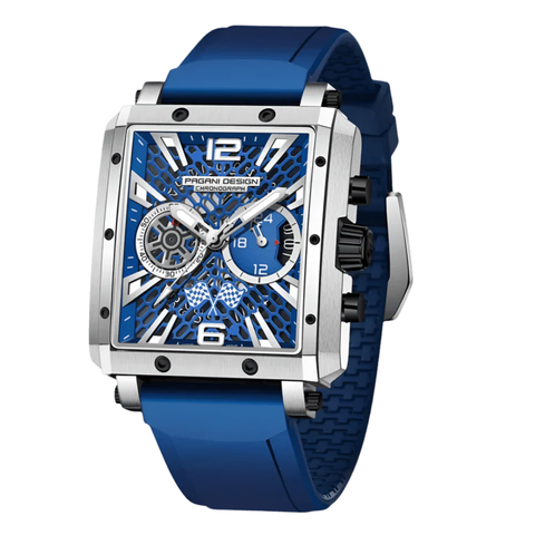 Pagani Blue Silicone Strap Blue Dial Chronograph Quartz Watch for Gents - PD-1725