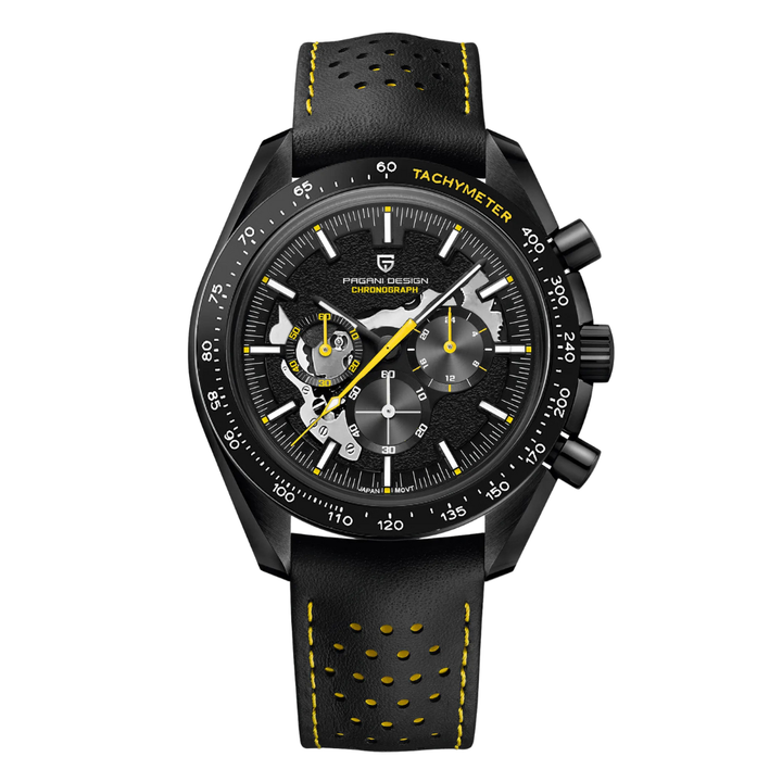 Pagani Design Black Leather Strap Black Dial Chronograph Quartz Watch for Gents - PD1779