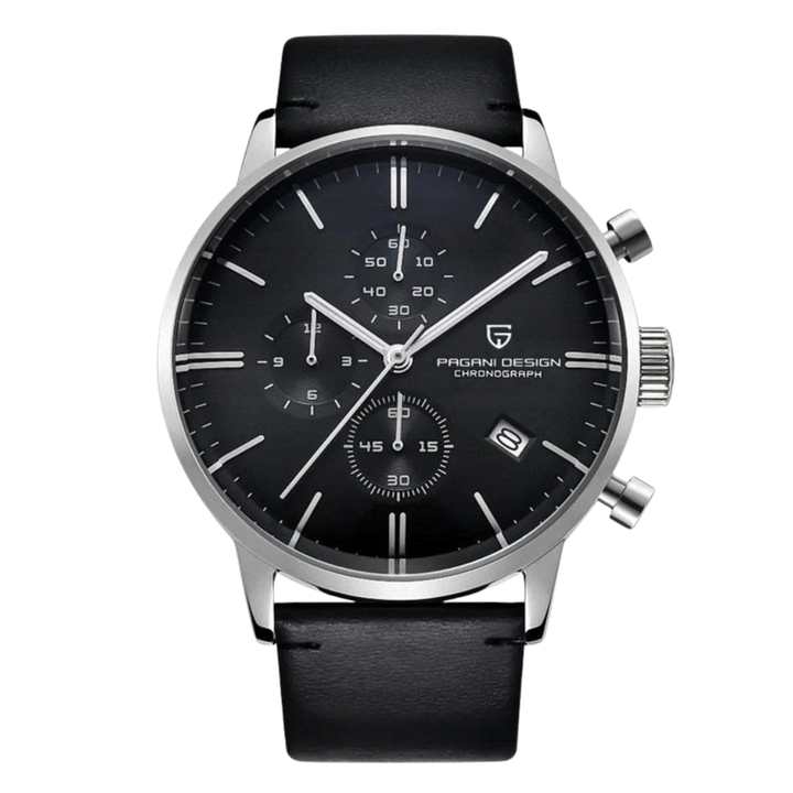 Add to WishlistPagani Design Black Leather Strap Black Dial Chronograph Quartz Watch for Gents - PD2720K