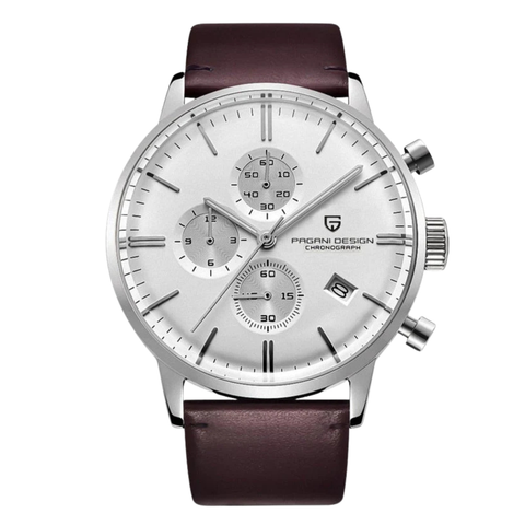 Pagani Design Brown Leather Strap White Dial Chronograph Quartz Watch for Gents - PD2720K