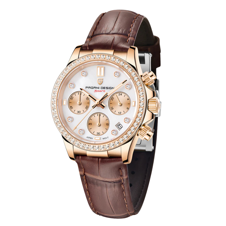 Pagani Design Brown Leather Strap White Dial Quartz Watch for Ladies - PD-1730