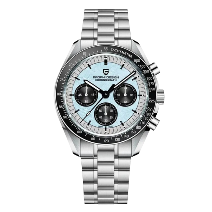 Pagani Design Silver Stainless Steel Aqua Blue/Black Dial Chronograph Quartz Watch for Gents - PD1701