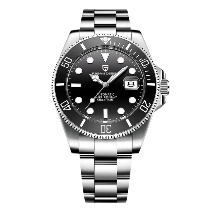 Pagani Design Silver Stainless Steel Black Dial Automatic Watch for Gents - PD1661