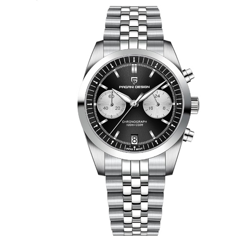 Add to WishlistPagani Design Silver Stainless Steel Black Dial Chronograph Quartz Watch for Gents - PD1775
