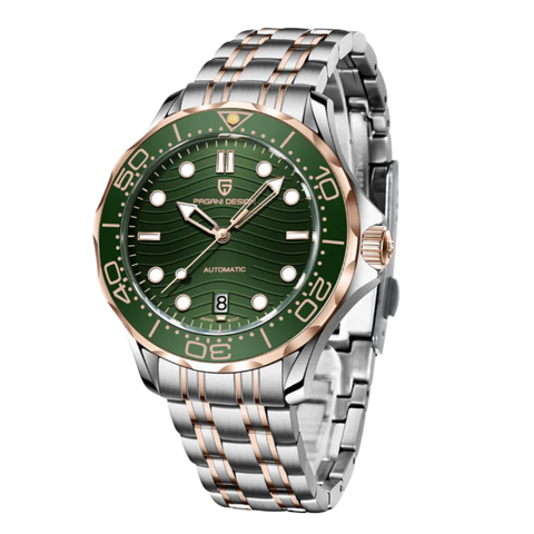 Pagani Design Silver Stainless Steel Green Dial Automatic Watch for Gents - PD-1685-G-CH SILVER/GREEN/ROSE T.T